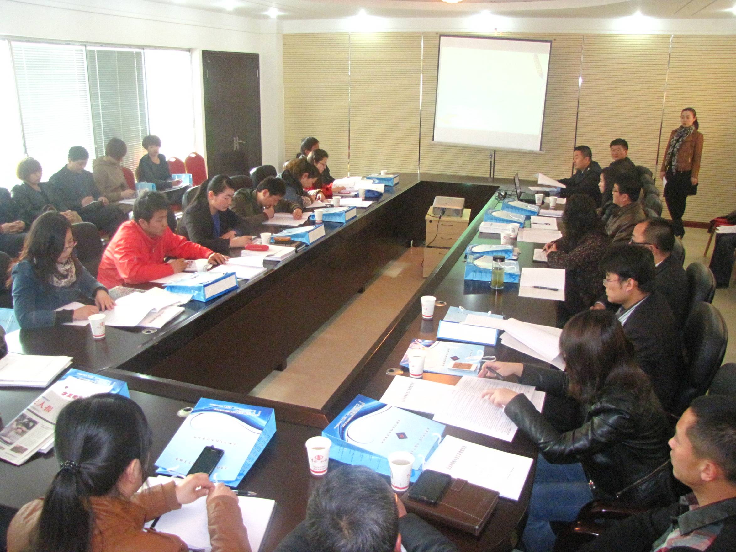 迎着冉冉升起的一轮红日,我们的梦在飞翔,千里之行始于足下,只有走好每一步才能长远。到达培训地点——中川服务中心,我们一行精心准备,调试设备、分装资料、准备迎接……。一切都很顺利完成,参加培训的企业代表陆续进入宽敞明亮的会议室。