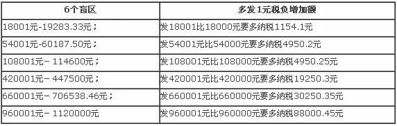 超额累进税率存在“临界点”效应,根据测算,单位发放年终奖存在“盲区”,在“临界点”附近,年终奖的数额的微笑变化,可能带来的是高达几万元的税负,单位在2015年年终奖的发放过程中,应避免以下6个盲区: