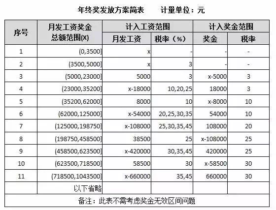 年终奖发放方案简表