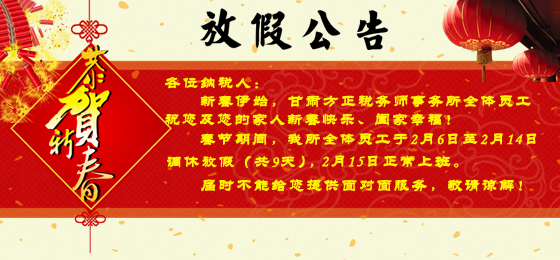 新春伊始,甘肃方正税务师事务所全体员工祝您及您的家人新春快乐、阖家幸福!