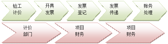 说明:计划、计价部门协调业务及相关单位验收项目,对工程项目价款按照合同规定进行确定,将竣工验收及付款确认文件传递项目财务部门,向机关财务部门申请开具发票,机关财务开具发票,登记相关台帐,将开具发票传递项目财务,项目财务进行账务处理,机关财务部门在规定期限内进行纳税申报。
