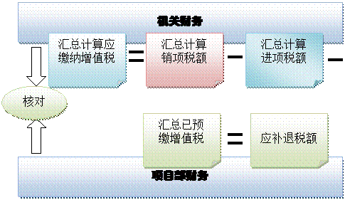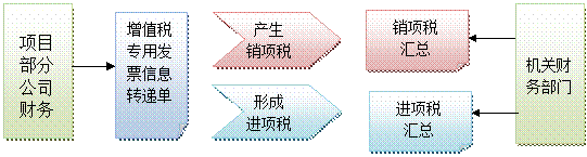 进、销项税额的结转与汇总,主要由项目财务部门与机关财务部门相关人员负责,主要工作是通过分支机构传递单将进、销项税额的信息传递至机关,项目部与机关财务部门进行账务处理。