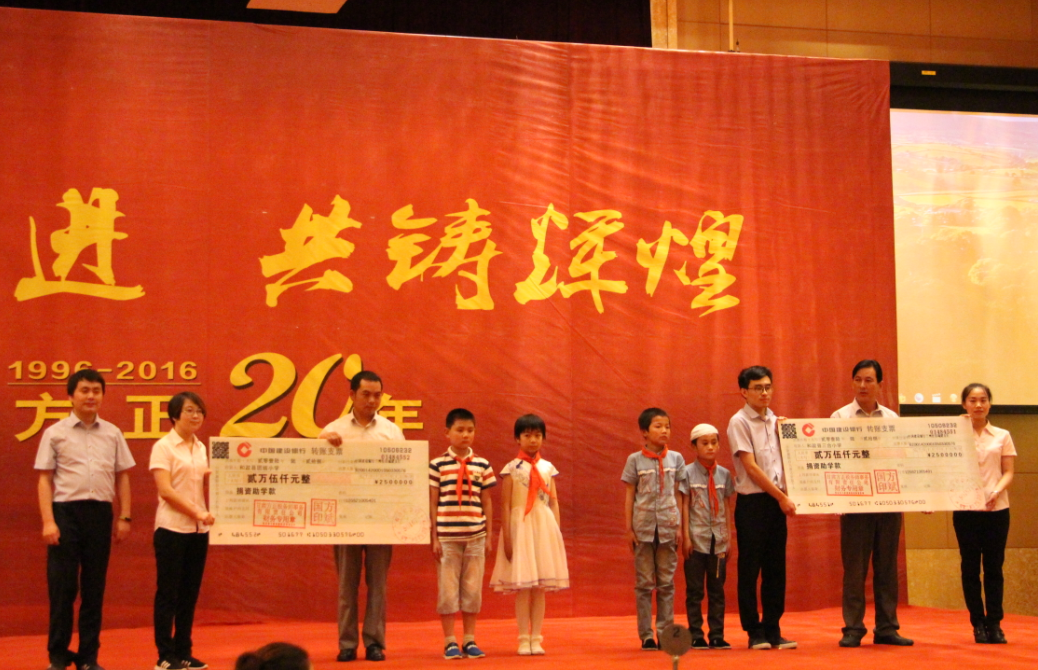 第三主题为回馈社会,助学捐赠表达了方正人的社会责任和爱心,活动中,方正事务所为两所学校捐助善款,用于小朋友书籍、校服的购置。