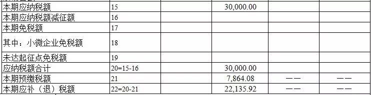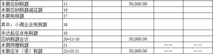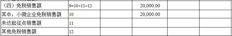 如果纳税人登记注册类型为个体工商户,此时计税依据部分小微免税收入20000元应填报于主表第9行和第11行。
