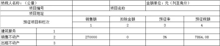 首先,异地预缴需要填写《增值税预缴申报表》,缴纳增值税7864.08元: