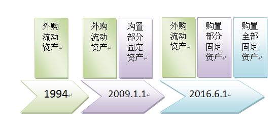对于第一个原因,作为方正税务师是深有体会,我们国家的法定增值额就走过了一个先大后小,先仅扣除外购流动资产,逐步扩大到机器设备等动产,本次营改增再扩大到不动产,变化情况如下图示: