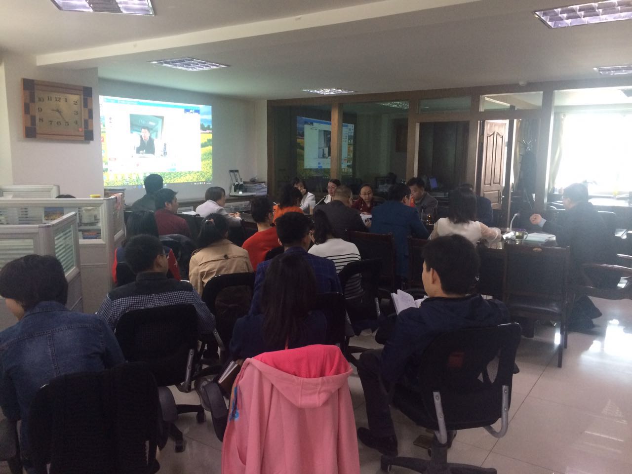 (税虫快讯)2016年4月2日上午9:00,甘肃方正税务师事务所刚参加完中税协五届三次理事会归来的方斌国所长给全所员工传达了中税协五届三次理事会会议精神,并对即将到来的“营改增”事项进行了再部署和再安排。