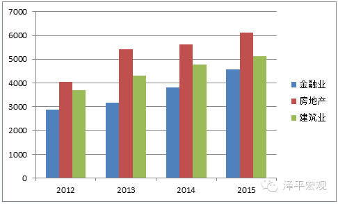 图2:近年来房地产、建筑业及金融业营业税 单位:亿元