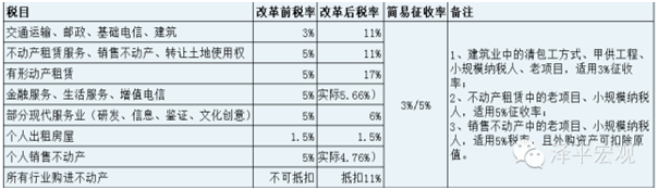 从短期看,由于一般纳税人存在老项目,小规模纳税人可以采取简易征收,这两种情况下的税率与营业税条件下一致,实际税率由于增值税属于价外税而略微下降。