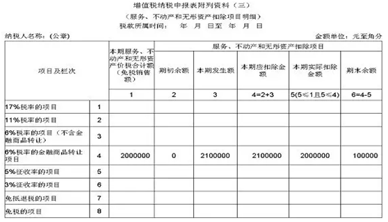 第二步:填写《增值税纳税申报表附列资料(三)》(服务、不动产和无形资产扣除项目明细)。(有差额扣除项目的纳税人填写)