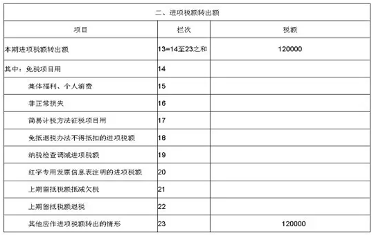 (2)进项税额转出额的填写
